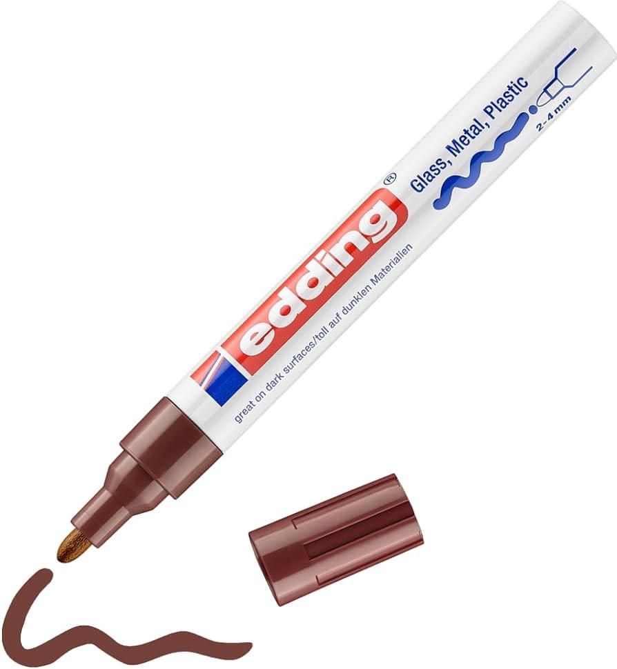Edding 750 kahverengi boya kalemi, çeşitli yüzeylerde kalıcı ve dayanıklı işaretlemeler yapabilen opak ve parlak mürekkebe sahip bir endüstriyel markördür.